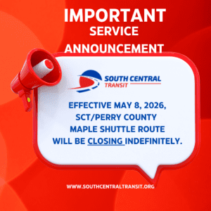Offering safe, reliable general public transportation through South Central Illinois for 35 years. Serving Clinton, Franklin, Jefferson, Marion, Perry, and Washington Counties.